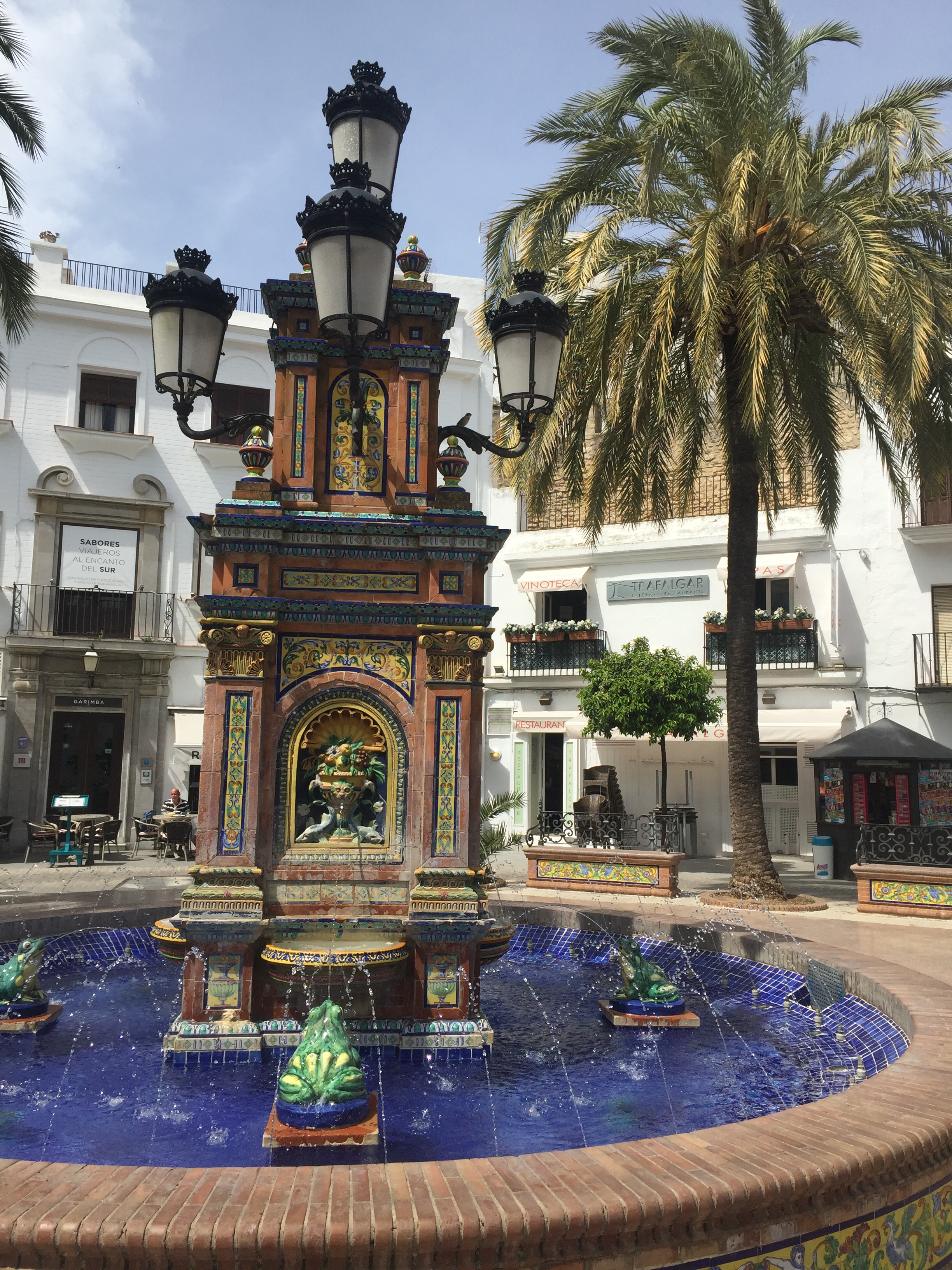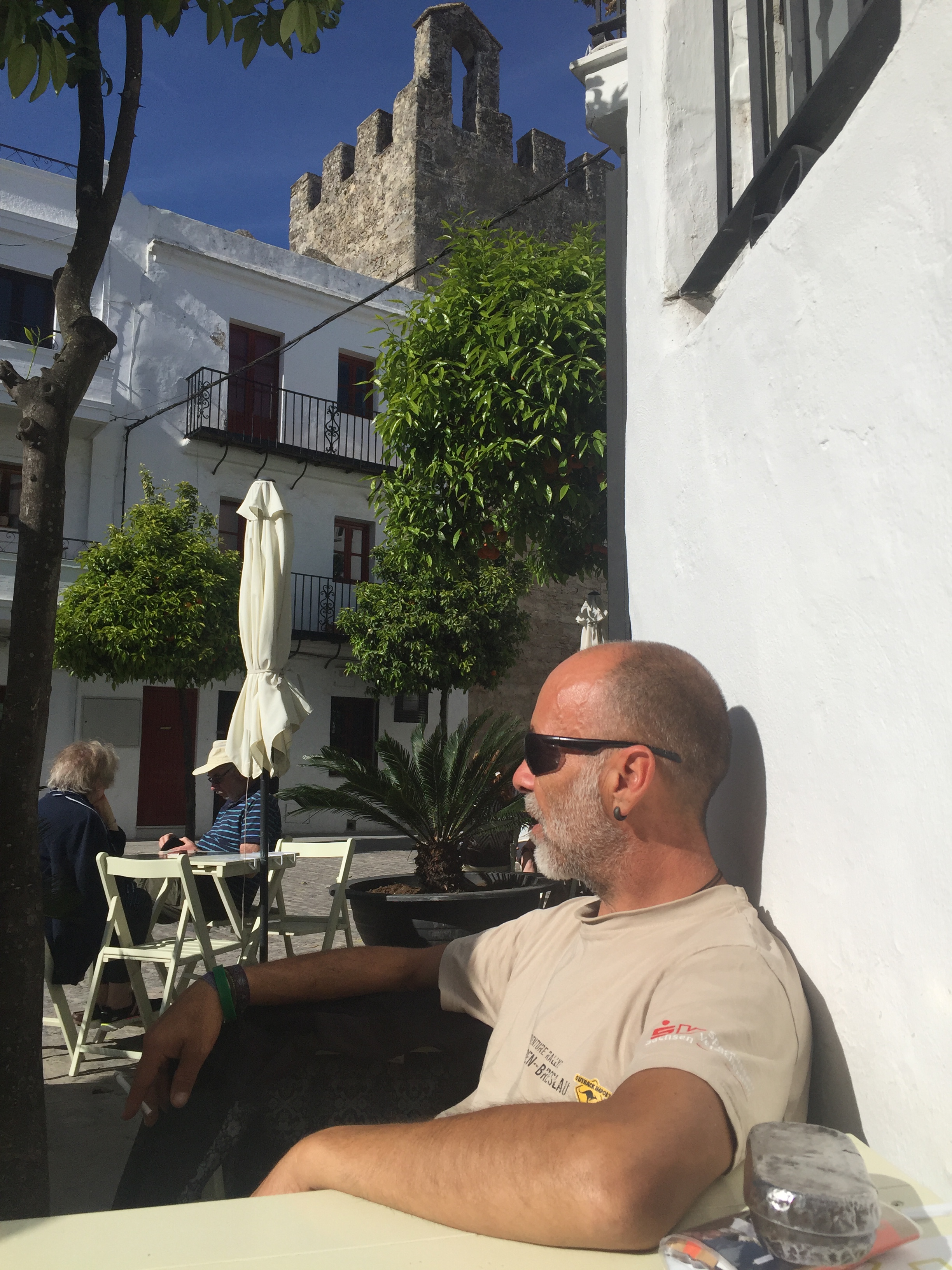 Nachdem wir einen im grünen gelegenen schönen Stellplatz am Ortseingang gefunden hatten, machten wir uns auf zur Entdeckungstour. Wir verliebten uns sofort in das Städtchen, mit seinen engen Gassen, kleinen Bodegas und Tapasbars, antiken Kirchen und seinem Castillo, einer alten Burganlage. Der „Plaza de Espana“, ein wunderschöner Platz mit einem großen Brunnen in üblich andalusischem Kacheldesign lud ein, sich in einem der umliegenden Cafes niederzulassen und einfach nur den Moment zu genießen. Was wir machten.
