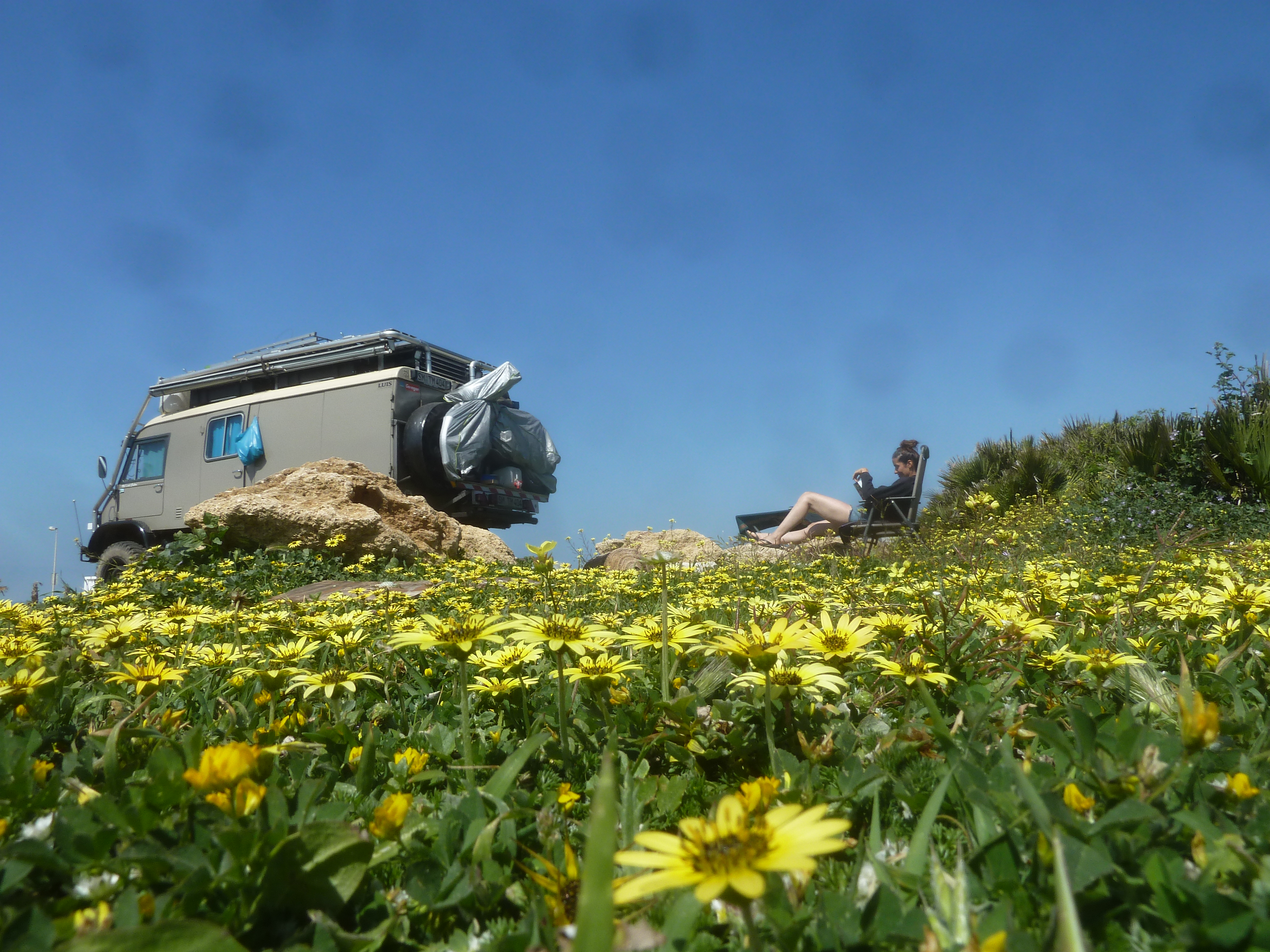 Im Anschluß fuhren wir weiter nach Conil de la Frontera, wo wir die Nacht verbringen wollten. Nachdem wir, beeindruckt von den riesigen Wellen, die dortigen Surfer beobachteten, kamen wir auch mit Einigen ins Gespräch, die uns einen Platz zum Stehen direkt am Meer empfahlen. Dort standen wir dann auch weitere 2 Tage und bekamen etwas vom coolen Surferleben mit.
